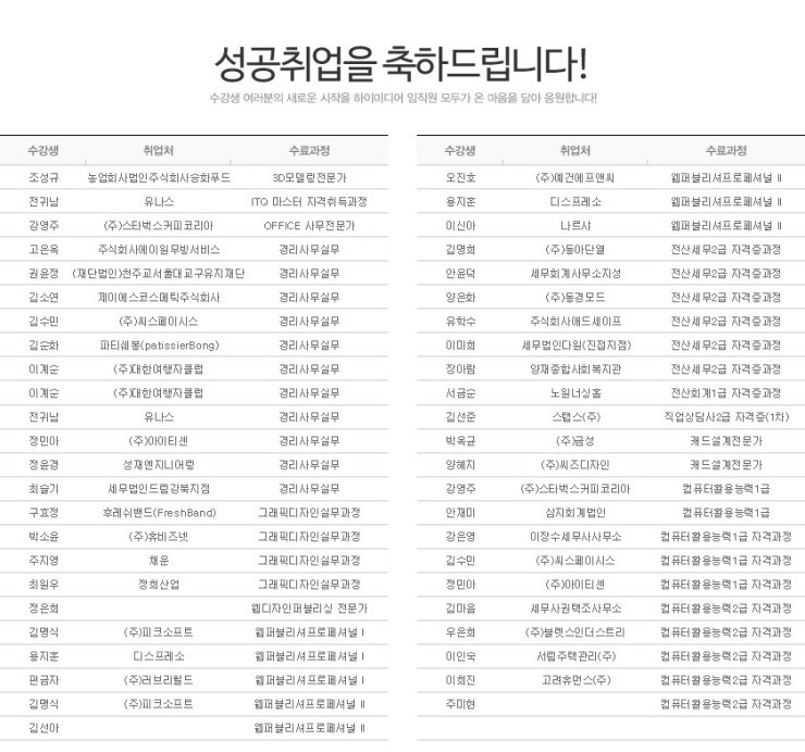 [성공취업] 2014년 8월 성공취업자 소식