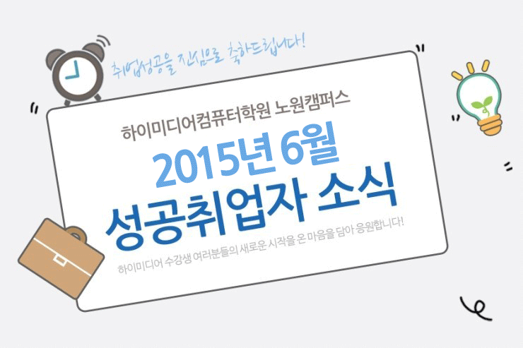 하이미디어컴퓨터학원 노원캠퍼스 2015년 6월 성공취업자 명단입니다.
